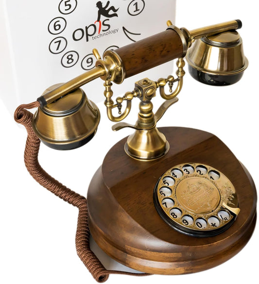 Opis 1921 Model C: The Classic Wood Vintage Rotary Candlestick Phone Replica - Looks Like an Old Fashioned Antique Retro Landline with Rotating Dial but is Fully Functional
